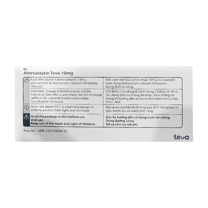 Atorvastatin Teva 10mg 3 vỉ x 10 viên