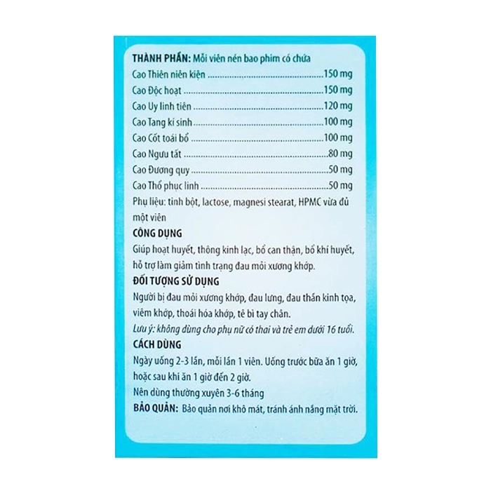 - Giúp hoạt huyết, thông kinh lạc, bổ can thận, bổ khí huyết, hỗ trợ làm giảm tình trạng đau mỏi xương khớp.