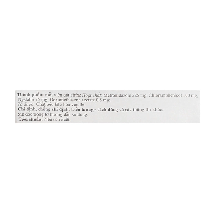 - Mẫn cảm với một trong các thành phần của thuốc: có tiền sử quá mẫn với metronidazol hoặc các dẫn chất nitro – imidazol khác, tiền sử quá mẫn với Nystatin, người bệnh có bệnh sử quá mẫn và/hoặc phản ứng độc hại do cloramphenicol.