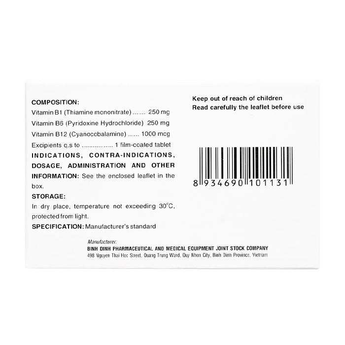 - Vitamin 3B TV.PHARM, 10 vỉ x 10 viên
