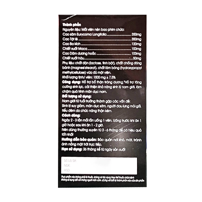 - Hỗ trợ tăng cường sinh lực, cải thiện khả năng sinh lý nam giới làm chậm quá trình mãn dục nam.